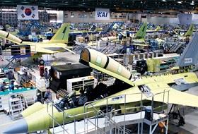 上月29日,韩国庆尚南道泗川市的韩国航空宇宙产业(KAI)航空器栋。在相当于2个足球场大小的工厂内,30多架淡绿色军用机