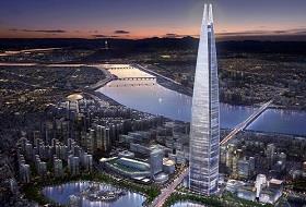 12月22日下午2点30分,长11.45米、重2.7吨的钢铁构造物从乐天世界大厦的76层开始送上建筑物最顶层123层。这