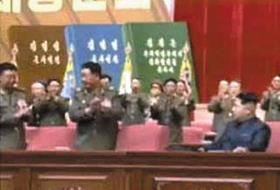 朝鲜军排名第一、第二的人物在朝鲜劳动党第一书记金正恩面前坐立不安,一举一动都十分小心翼翼的样子被电视公开。 朝鲜中