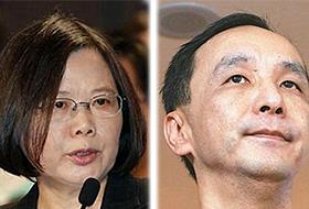 上月28日在台北各地都能看到民进党总统参选人蔡英文(59岁)的照片。最近民意调查结果显示,蔡英文与国民党的朱立伦分别获得