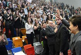 当地时间4日,韩国总统朴槿惠在捷克布拉格与2000名当地韩流粉丝观看K-POP演出。 朴槿惠正在对捷克进行国事访问