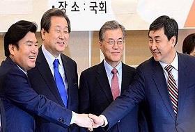 30日,新国家党代表金武星和新政治民主联合代表文在寅就处理韩中FTA国会批准案达成最终协议。在之后举行的国会全体会议上,