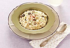 <b>香味扑鼻口感香浓的奶油培根米饭</b> 味道与意大利奶油炖饭相同,但制作方法更简单的