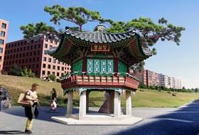 在德国柏林的中心街道波茨坦广场,建起了祈愿韩国统一的“统一亭”。文化体育观光部和海外文化宣传院,于当地时间25日上午,在