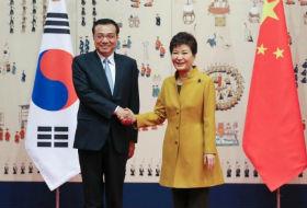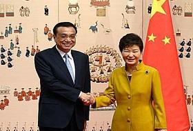 10月31日,韩国总统朴槿惠与中国国务总理李克强举行了107分钟的会谈,超过预期时间40多分钟。青瓦台外交安保首席金奎显