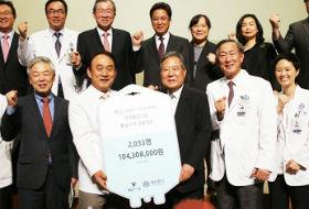 10月28日,延世医疗院的2244名教职工和学生把通过“统一输液项目”募集的1.12亿韩元(约合63万元人民币)捐给了统