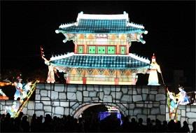 10月1日,“2015晋州南江流灯庆典“(图)开幕。11天的时间里,7.7万多个五颜六色的流灯灯光将照亮晋州城和南江一带