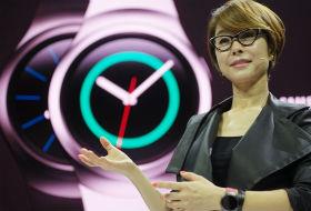 蒙着面纱的三星电子新型智能手表Gear S2公开。 3日(当地时间)在德国柏林无线电国际博览会上,三星电子在180