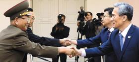 23日,韩朝在板门店南侧地带的“和平之家”进行了两天的高层接触,为解决由朝鲜的地雷和炮击挑衅引发的军事对峙,双方进行了马