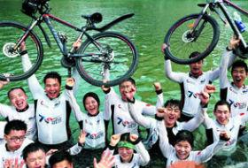 “看到綦江河了!” 本月4日,在炽热的阳光下,吃力地爬上无尽山路的韩中青年自行车大长征队员们,指着流过山坡的河水大