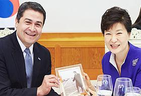 韩国总统朴槿惠20日在青瓦台与洪都拉斯总统胡安·奥兰多·埃尔南德斯举行会谈,并对能源产业、基础设施建设等领域的合作方案进