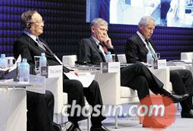 19日,亚洲领导力会议的首个讨论主题是“终战70周年和平和繁荣的领导力”。韩国、美国、中国、日本和德国、泰国的前任首脑及