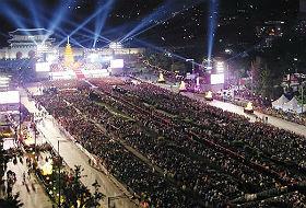 16日晚,首尔光化门到市政厅门前的马路被30万名(推定为曹溪宗)佛教弟子手中的五色莲灯映照成一片光海。在这里,进行了山中