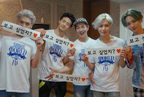 5月16日,SM娱乐公开了SHINee在演唱会后台的认证照。 在公开的照片中,SHINee五位成员手举同样的手幅,