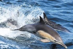 本月7日,蔚山长生浦的鲸鱼生态体验馆里,看到按照饲养员的指示,发挥才能,向着皮球跃出水面的海豚们,孩子们发出了欢呼。还有