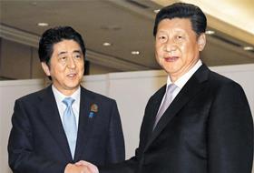 中国国家主席习近平22日在印度尼西亚雅加达举行的亚非领导人会议(万隆会议)上会见了日本首相安倍晋三,表示:“双方要继续开