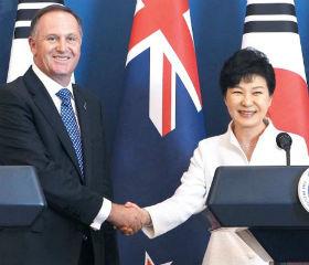 韩国和新西兰于去年11月商定的自由贸易协定(FTA)本月23日正式签字。当天,朴槿惠总统与新西兰总理约翰·基在青瓦台举行