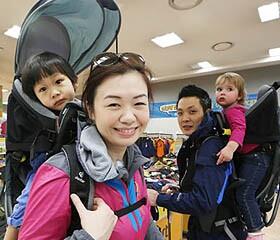 和煦的春日来临,登山的人也越来越多。有年幼子女的父母外出登山时孩子该怎样处理? 15日,韩国易买得清溪川卖场内,模
