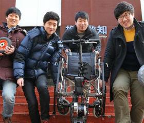 去年11月,一位大学生带着与一个轮子相连的电动机来到首尔阳川残疾人综合福利院。20余名坐着轮椅的残疾人带着好奇的表情聚过