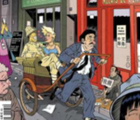 戴着贝雷帽的法国绅士用人力车载着中国“暴发户”和金发女郎,吃力地在巴黎街头奔跑(见图)。金发女郎似乎在向暴发户卖笑。