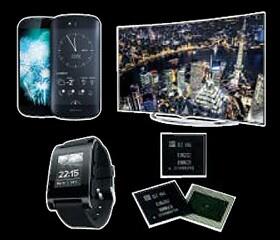智能手机“Galaxy S5”(照片左侧)和可穿戴设备(Wearable)“Gear Fit”等三星电子的4种移动设备进