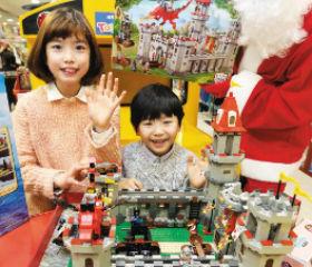 [image1] 圣诞节仅剩下3天。图为21日,韩国乐天玛特蚕室分店的玩具卖场内,儿童模特们正在展示组装玩具“龙之城堡
