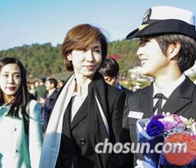 SK集团总裁崔泰源的次女崔敏贞(音)接受为期11周的教育后,正式被授予海军少尉的军衔。第117届海军军官授衔仪式26日下
