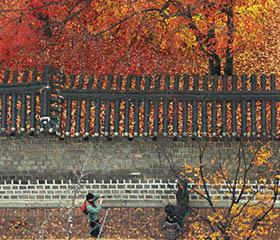 [image3] 23日上午,位于首尔中区的德寿宫内,金色的银杏叶似乎要将整个世界安静覆盖。天气回暖的周末,韩国各地的