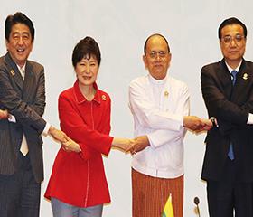 韩国总统朴槿惠13日出席在缅甸内比都举行的东盟与韩中日(10+3)领导人会议,她表示:“今年9月在首尔举行了韩中日高官会