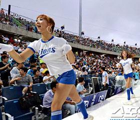 [image1]使人联想起K-POP明星的拉拉队成员们精彩的舞姿、观众敲着气球杆动作整齐地加油助威、扯着嗓子合唱《釜山海