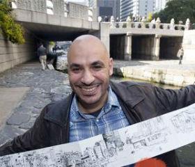 不知道会在首尔何处遇见这位法国漫画家。从去年开始,漫画家萨米尔·达玛迪(音)将挤得满满的公交车、地铁、喧闹的市场、咖啡厅