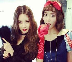 韩国女团少女时代成员徐贤和允儿Cosplay成吸血鬼和白雪公主的照片公开,美艳动人。 徐贤5日在Instagram