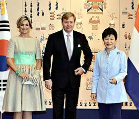 韩国总统朴槿惠3日在青瓦台与荷兰国王威廉·亚历山大举行首脑会谈时表示:“韩国和日本本应为实现东北亚的和平与繁荣而加强合作