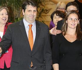 美国总统奥巴马的心腹、美国新任驻韩大使马克·利伯特30日下午在韩国正式上任。 利伯特和怀孕六个月的妻子罗宾女士一起