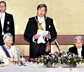 日本天皇29日晚在日本东京皇宫为荷兰国王威廉·亚历山大夫妇举办的宫中欢迎晚宴气氛十分融洽。亚历山大在晚宴上引用日本传统诗