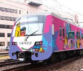 30日上午,彩绘着韩国本土卡通形象“Larva”的卡通地铁亮相首尔阳川区。首尔市将于11月1日起正式运营10辆华丽的“L
