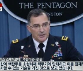 驻韩美军司令柯蒂斯•斯卡帕洛蒂表示,相信朝鲜具备核弹头小型化技术,而且可以将它安装在导弹上。他是美国时间24日在美国华盛
