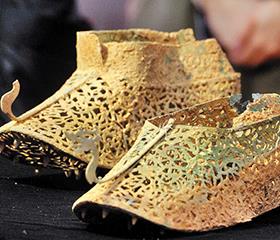 “第一次出土保存如此完整的百济金铜鞋!” 本月23日,在全罗南道罗州市国立罗州文化遗产研究所(所长李相俊,音)大会