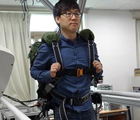 本月26日,在大田市儒城区国防科学研究所(ADD)第5研究技术本部国防无人技术中心研究室里,一名研究员身上穿戴着与康复辅