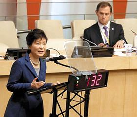 联合国气候峰会当地时间23日在美国纽约联合国总部开幕。韩国总统朴槿惠发表演讲说:“韩国已经承诺为绿色气候基金(英文:Gr
