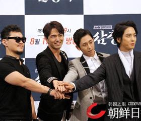 韩国tvN电视台新周日电视剧《三剑客》的新剧发布会12日在首尔皇宫大酒店举行。《三剑客》是由《仁显王后的男人》和《Nin