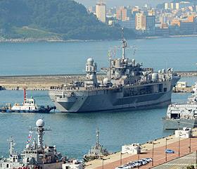 12日,美国第七舰队旗舰“蓝岭”号两栖指挥舰(排水量1万9600吨)抵达釜山南部的海军作战司令部釜山基地,以参加下周开始