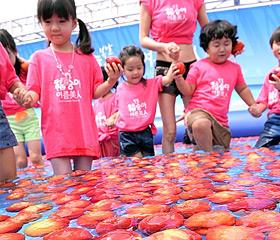 31日上午,由农协和韩国桃子生产者协会组织的“2014桃子日活动”在首尔钟路南山韩屋村举行。在活动中,孩子们在装满桃子的