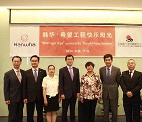 韩国十大企业之一韩华集团今年与中国青少年发展基金会一起进行向中国贫困地区学校捐赠光伏发电设备的活动,此项活动去年也举行过