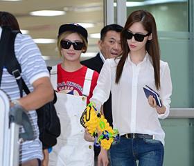 少女时代成员允儿14日在金浦机场返回韩国的时候一身休闲装扮,展现独特时尚造型。 允儿上衣选择了一件JOE FRES