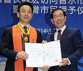 首尔市市长朴元淳28日会见受邀访问首尔的四川省省长魏宏。双方当天签署友好合作协议,朴元淳向魏宏授予“首尔市名誉市民”证书