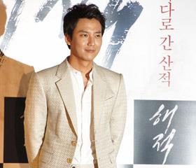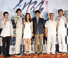 韩国电影《海盗》的媒体首映式23日在首尔乐天影院建大入口店举行。导演李石勋和演员金南佶、孙艺珍、刘海镇、李璟荣、金泰宇等