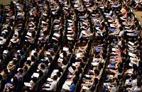 图为,本月5日上午,在首尔市冠岳区首尔大学文化馆大讲堂举行的“首尔大学入学考试说明会”上,学生及学生家长们正在听取相关说