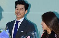图为,7日上午在首尔钟路区国税厅举行的“2014国税厅宣传大使委任仪式”上,韩国演员孔侑与河智苑同国税厅厅长金德中一起拍