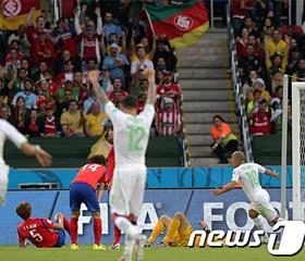 2014年巴西世界杯H组韩国与阵阿尔及利亚队的第二场比赛在阿雷格里港滨河球场进行。 上半场,韩国队后防崩溃,第26